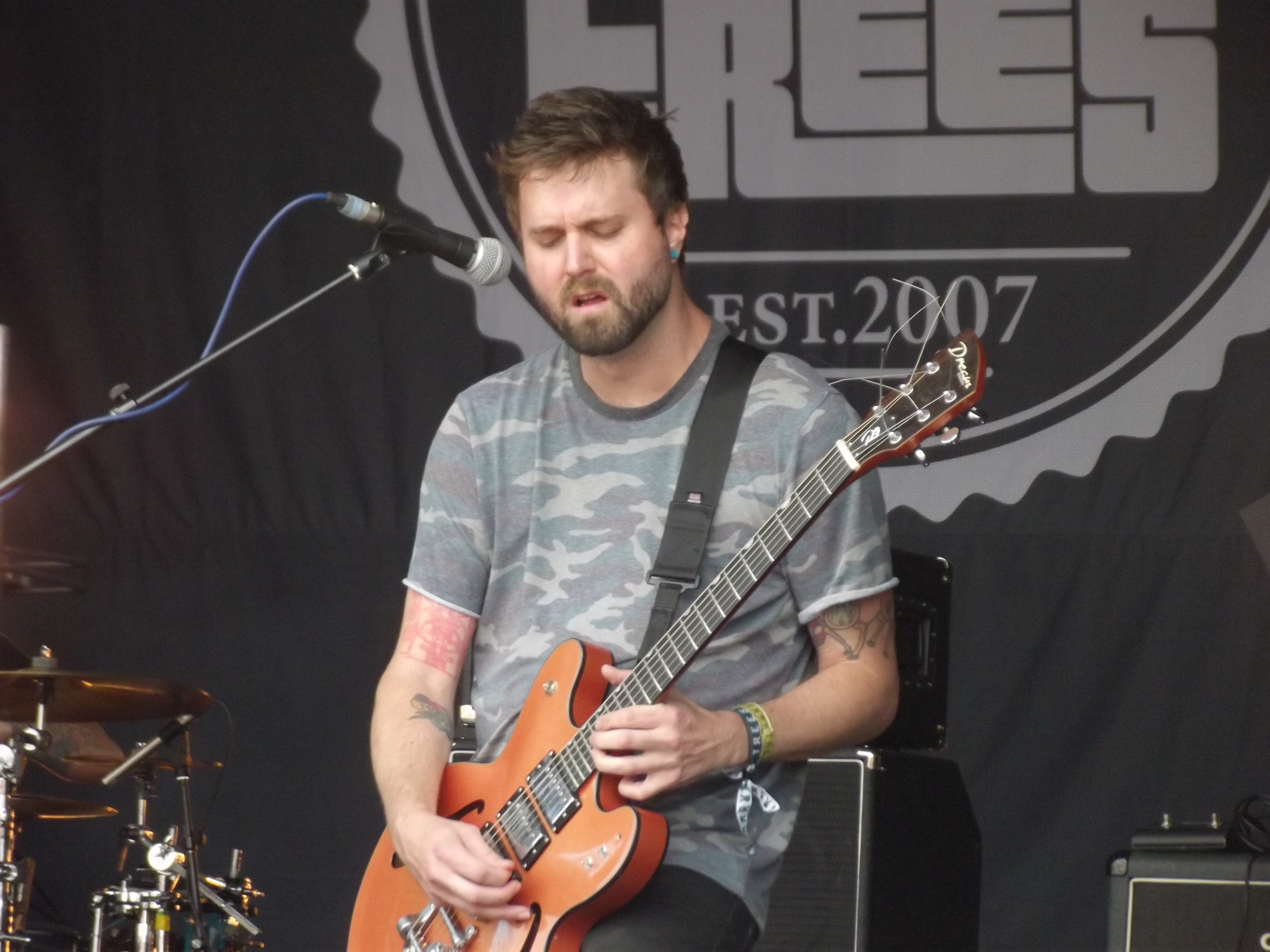 Ducking Punches offer some respite from the ear blasting rock music as they present an acoustic set in the woods. It wouldn’t be a proper 2000 Trees without at least one visit to the Forrest stage for a bit of a chill out. Mind you, the stage area is heaving so there’s not much room to actually lay out. However, Ducking Punches offer a great acoustic accompaniment to a rest with a cool beer. You also get the benefit of hearing a song about best friends being cannibals, which is a pretty unusual song topic!