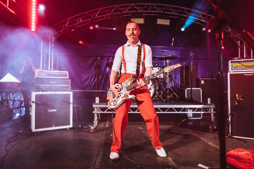 Slow Crush are the band who have the dubious honour to wake us from our slumber on Saturday. Appropriately, there’s a dreamlike quality to their sound. Many of the songs are grungy, slow and melodic tracks. They are clearly well liked as they attract a surprisingly large crowd to the Neu stage, especially given their early set time. Whilst they are on the Neu stage, they play with a confidence which suggests that they’ll be on bigger stages in the not too distant future.
